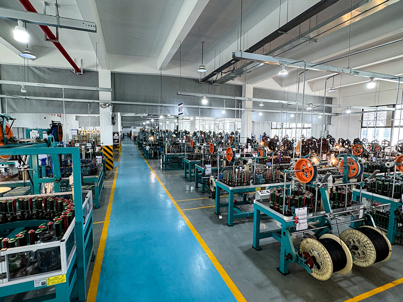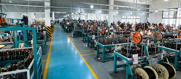 브레이딩 (트윌브레이딩 기계)우리 회사에는 PET, 나일론, 노멕스, 케블러 슬리빙 등 다양한 교정기를 장착할 수 있는 150개의 브레이징 기계가 장착되어 있다.